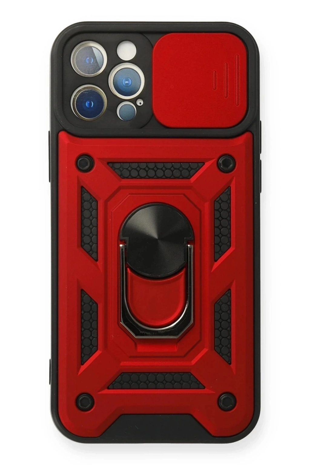 BFS iPhone 12 Pro Kılıf Pars Lens Yüzüklü Silikon - Kırmızı
