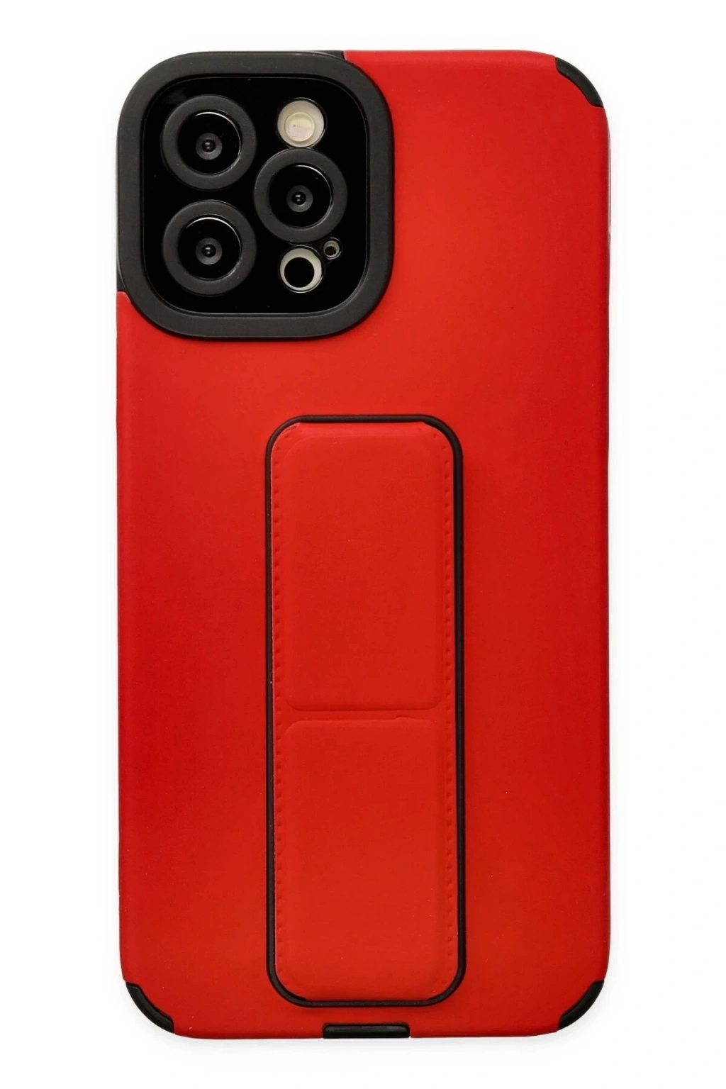 BFS iPhone 12 Pro Max Kılıf Mega Standlı Silikon - Kırmızı
