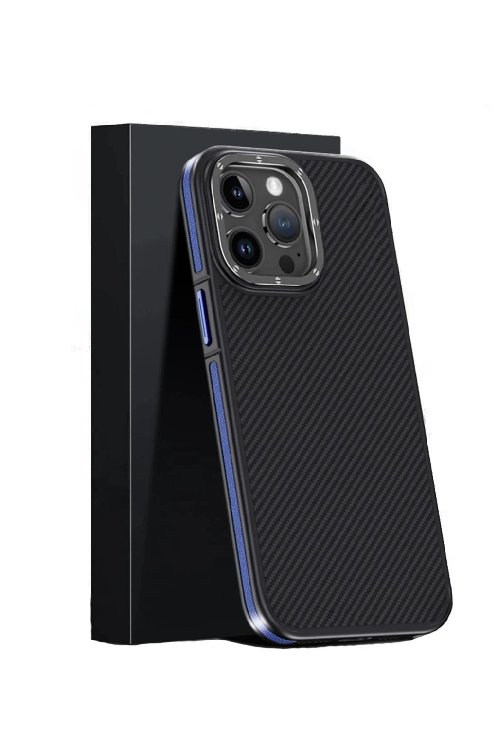 BFS iPhone 15 Pro Max Kılıf Aramid 600D Kevlar Karbon Fiber Magsafe Kapak - Lacivert