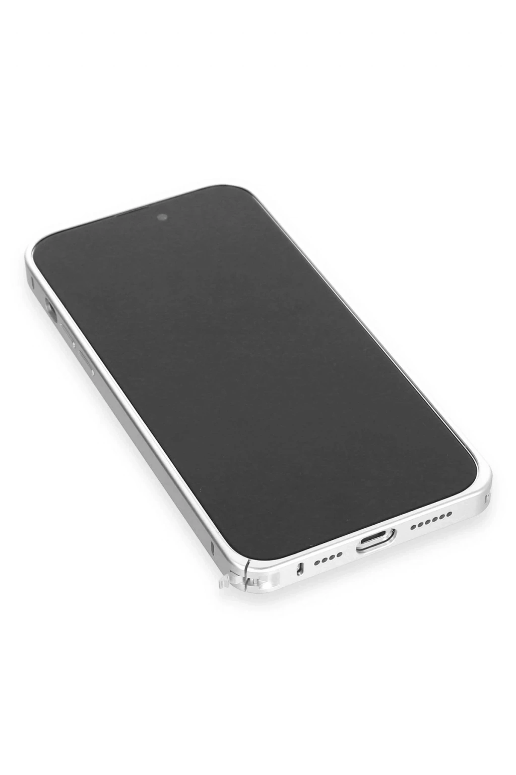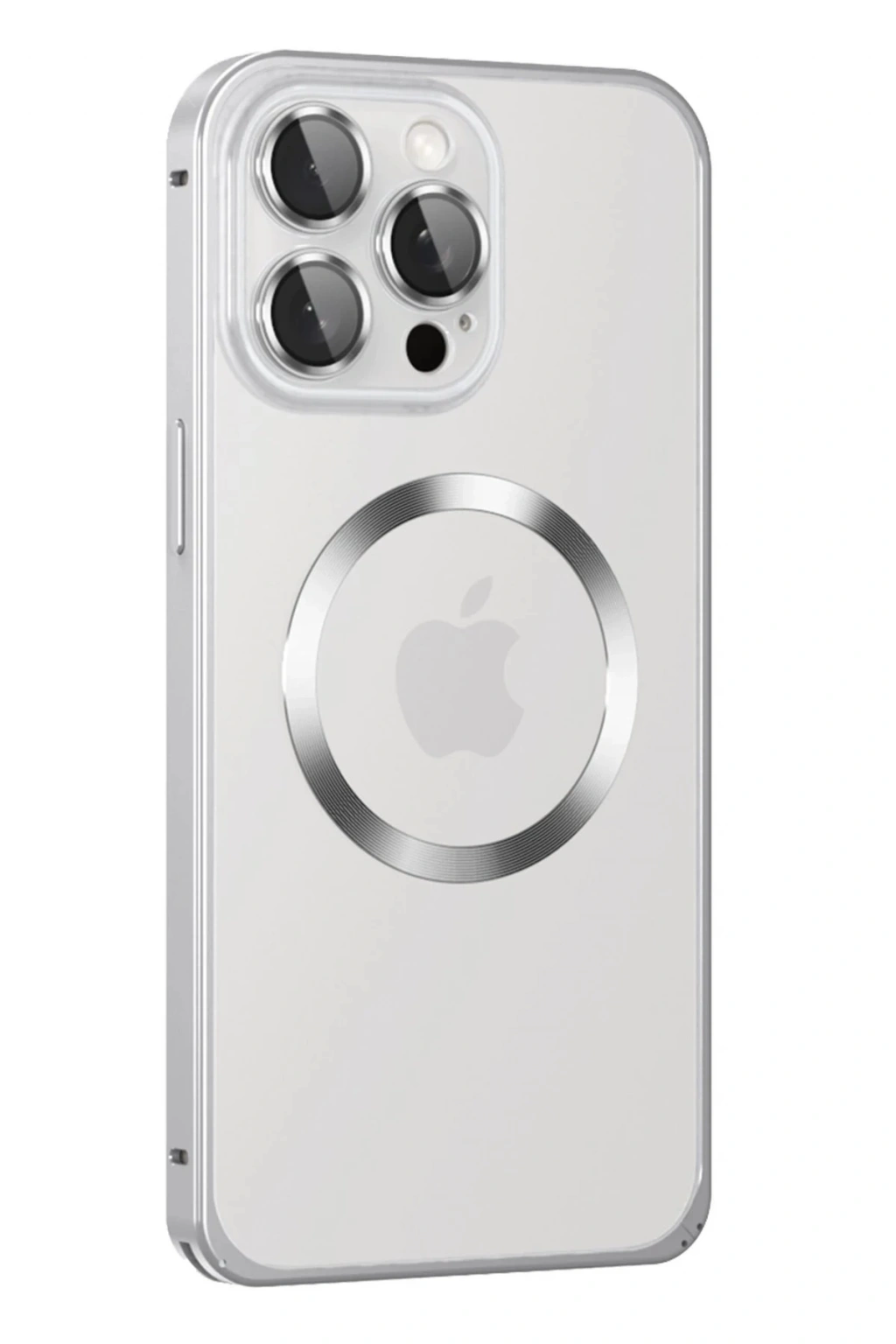BFS iPhone 15 Pro Max Kılıf Metal Bumper Magneticsafe Kapak - Gümüş