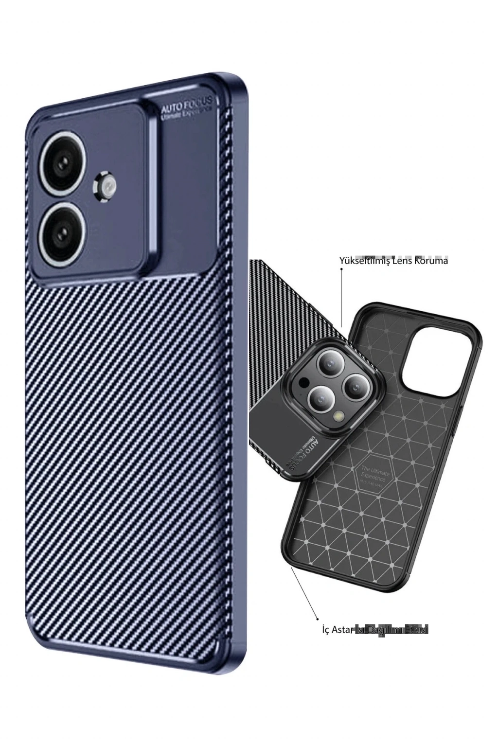 BFS Oppo A3 Kılıf Auto Focus Karbon Kapak - Lacivert