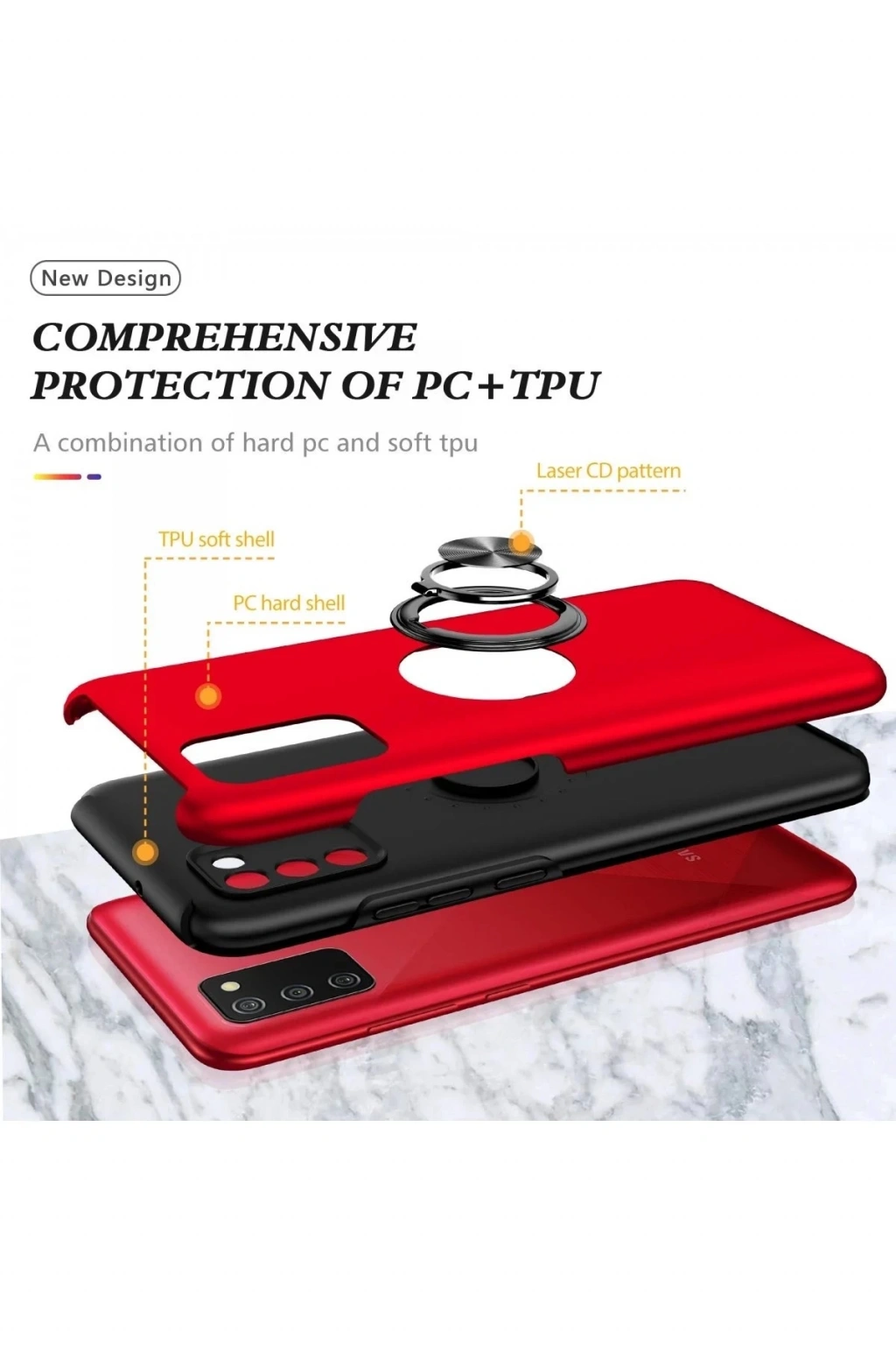 BFS Samsung Galaxy A02S Kılıf Elit Yüzüklü Kapak - Kırmızı