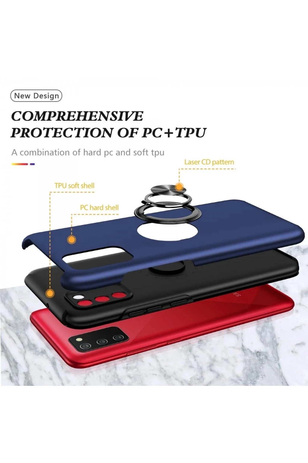 BFS Samsung Galaxy A02S Kılıf Elit Yüzüklü Kapak - Lacivert
