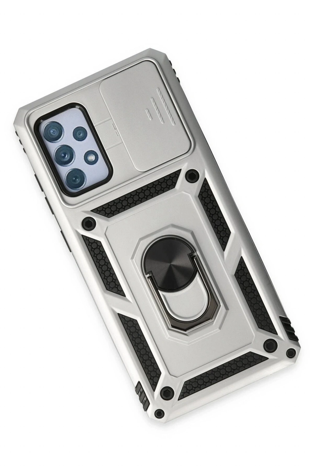 BFS Samsung Galaxy A72 Kılıf Pars Lens Yüzüklü Silikon - Gümüş