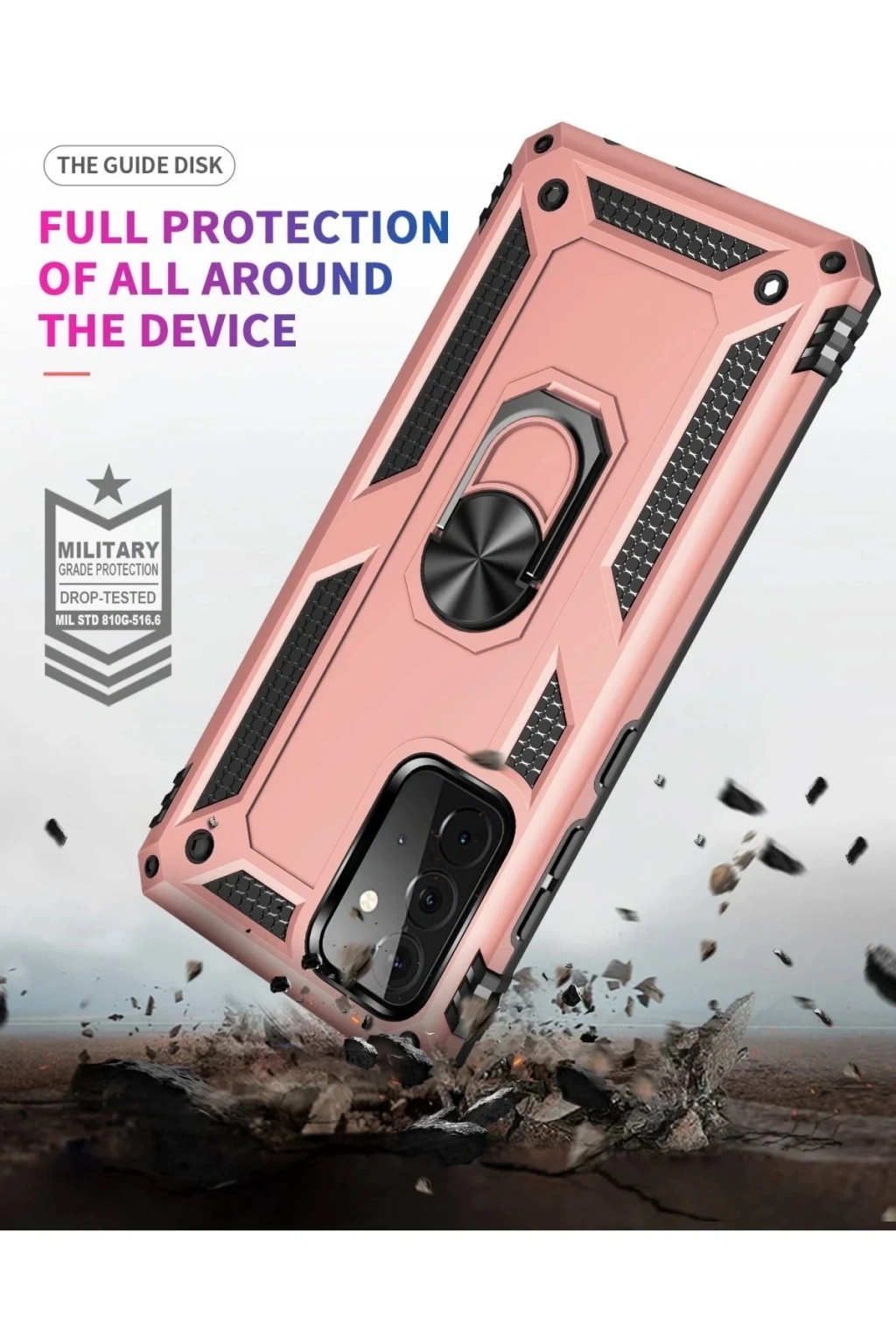 BFS Samsung Galaxy A72 Kılıf Sofya Yüzüklü Silikon Kapak - Rose