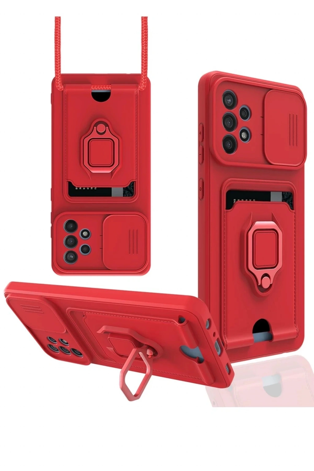 BFS Samsung Galaxy A72 Kılıf Zuma Kartvizitli Yüzüklü Silikon - Kırmızı