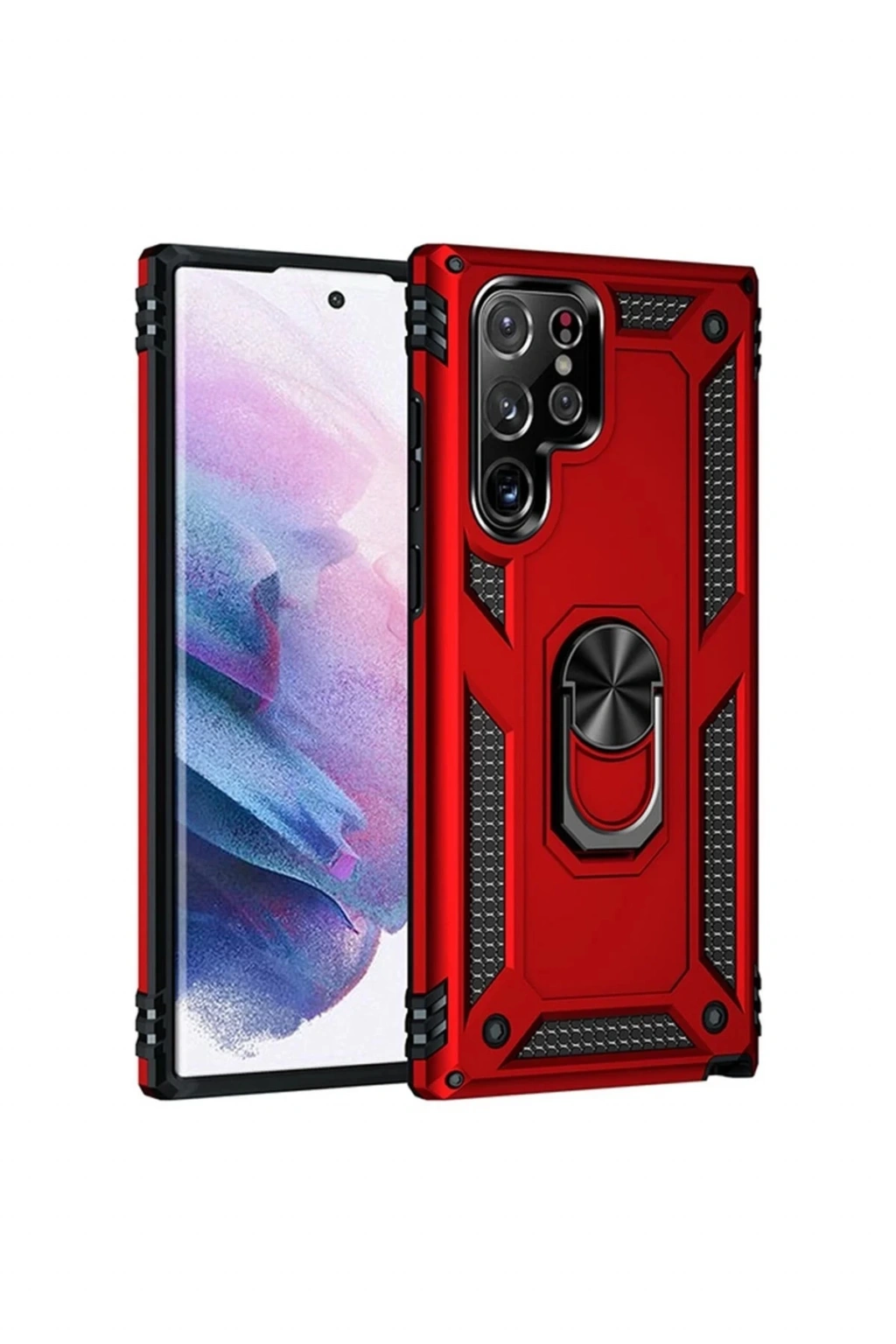 BFS Samsung Galaxy S22 Ultra Kılıf Sofya Yüzüklü Silikon Kapak - Kırmızı