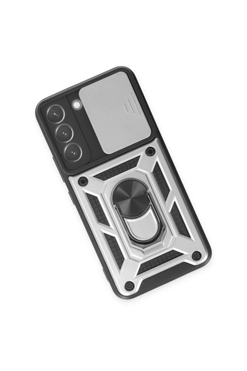 BFS Samsung Galaxy S24 Kılıf Pars Lens Yüzüklü Silikon - Gümüş