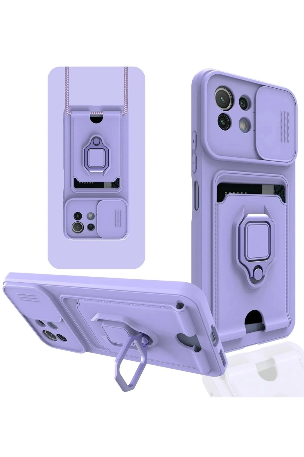 BFS Xiaomi Mİ 11 Lite Kılıf Zuma Kartvizitli Yüzüklü Silikon - Lila