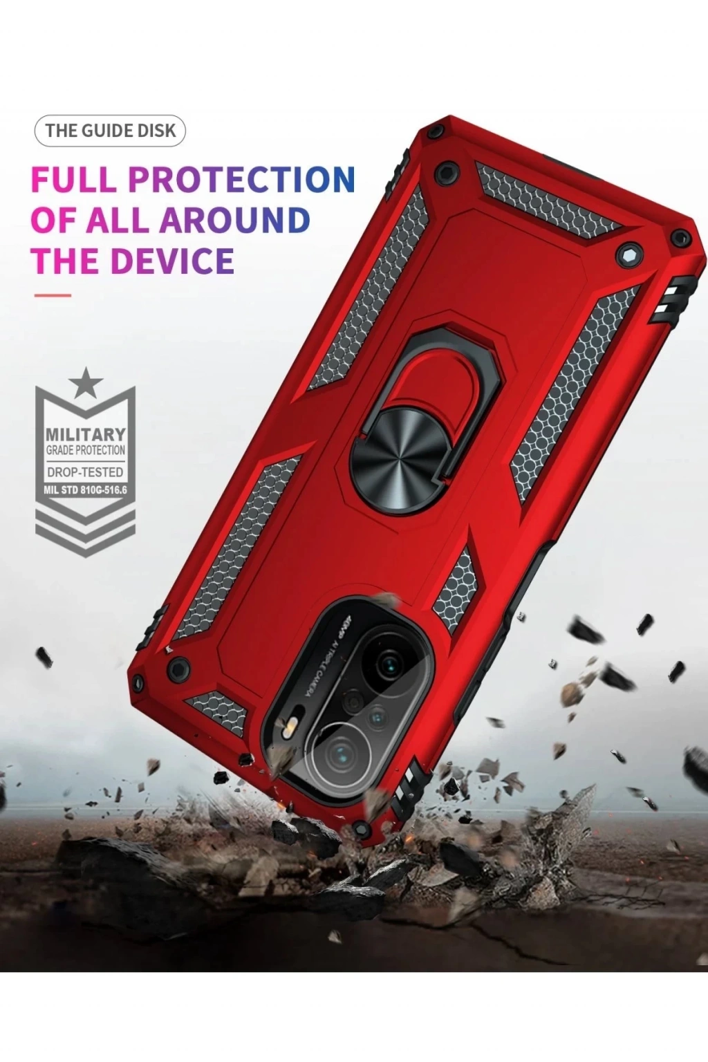 BFS Xiaomi Poco F3 Kılıf Sofya Yüzüklü Silikon Kapak - Kırmızı
