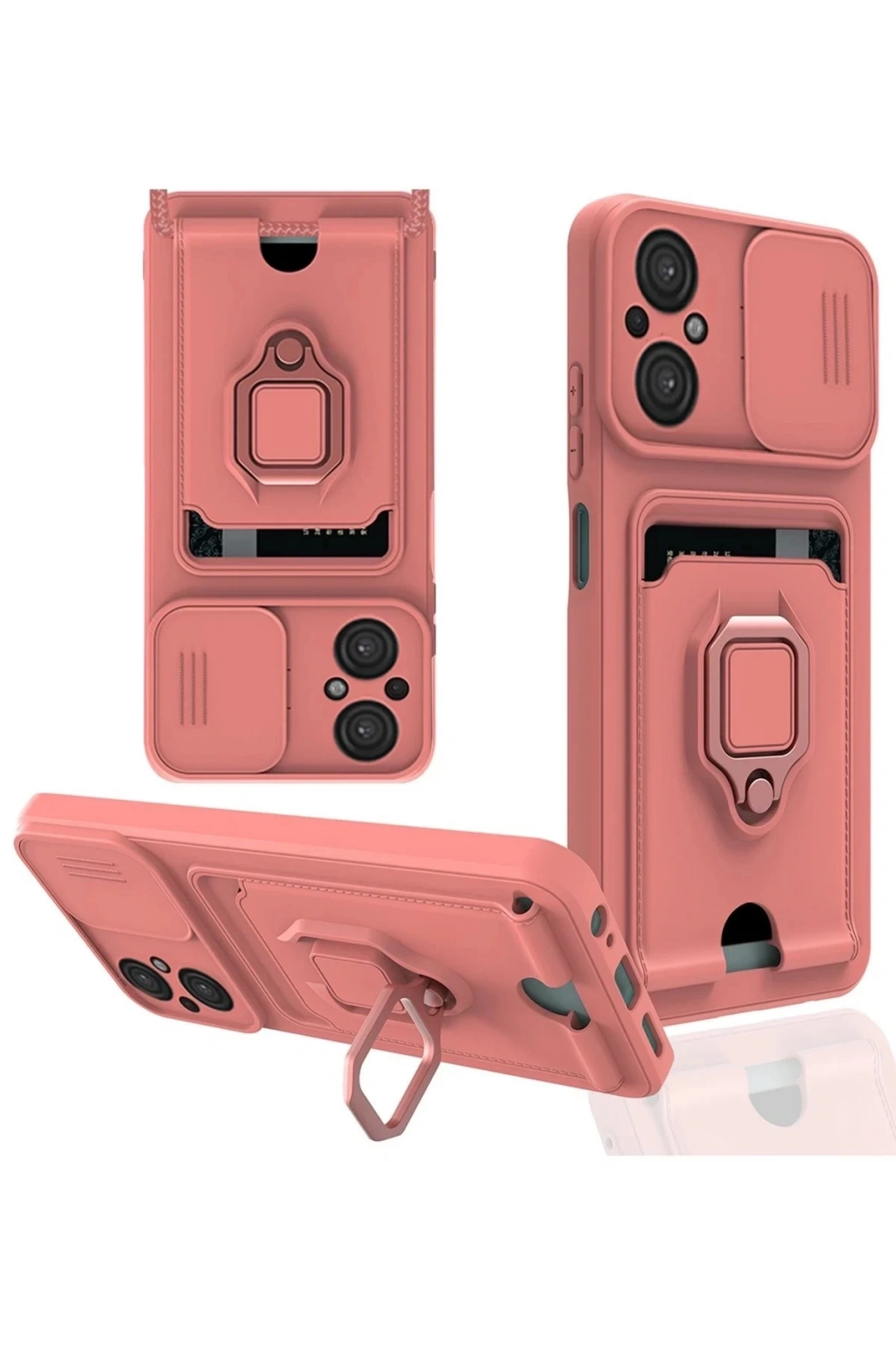 BFS Xiaomi Poco M5 Kılıf Zuma Kartvizitli Yüzüklü Silikon - Pembe