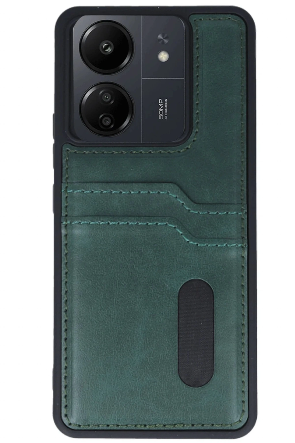 BFS Xiaomi Redmi 13C Kılıf Sara Kartvizitli Deri Kılıf - Koyu Yeşil