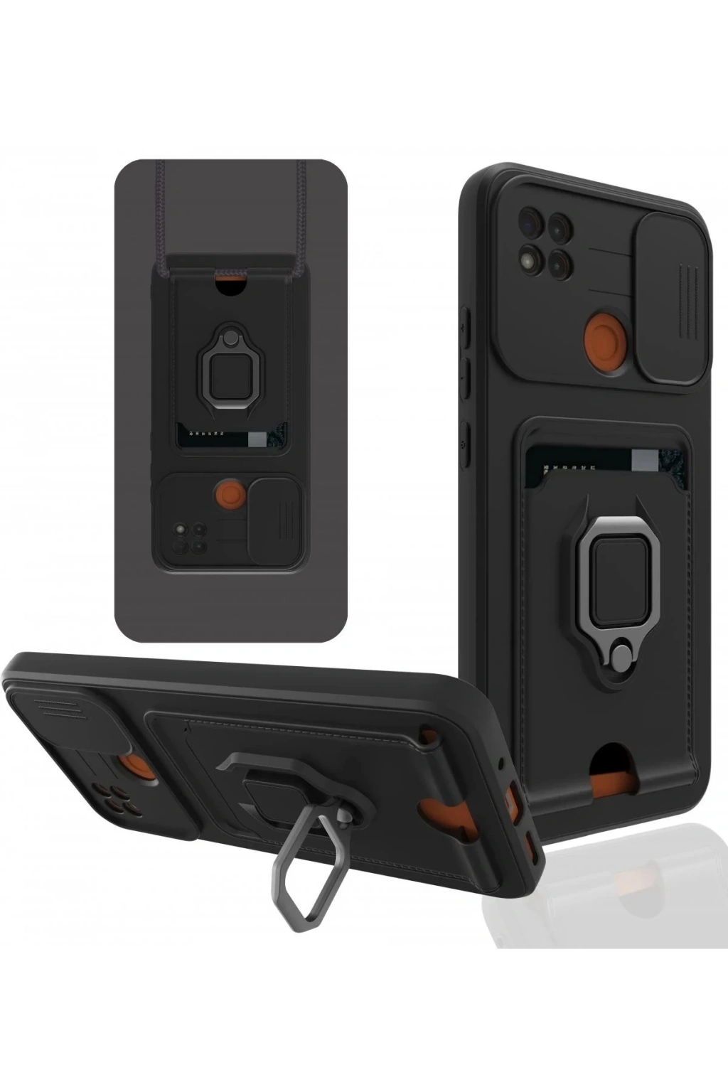 BFS Xiaomi Redmi 9C Kılıf Zuma Kartvizitli Yüzüklü Silikon - Siyah