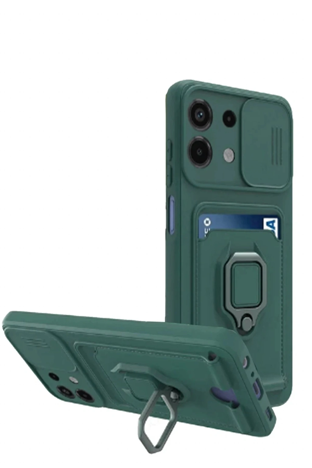 BFS Xiaomi Redmi Note 13 4G Kılıf Zuma Kartvizitli Yüzüklü Silikon - Yeşil